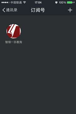 3、在【订阅号】中找到我们,点击进入【智领一百教育】公众微信